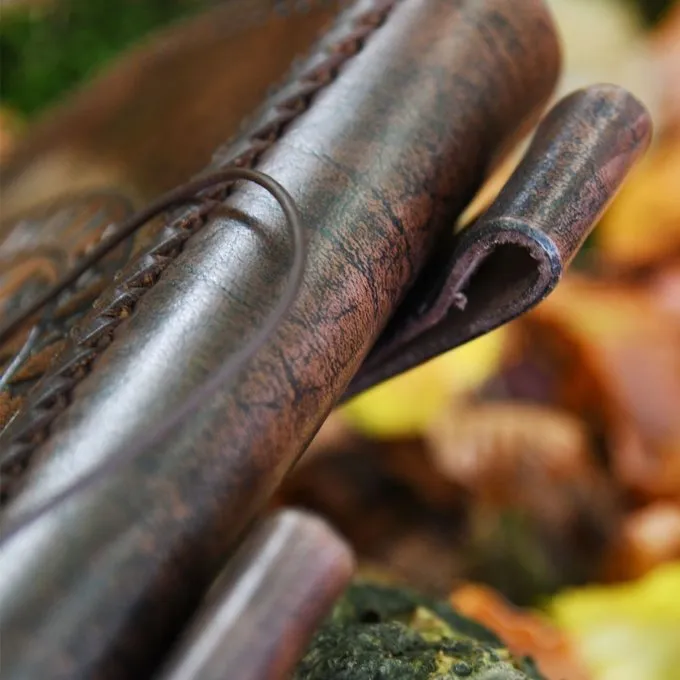 Diese Tasche ist wunderschön mit einem Vegvissir -Motiv eingerichtet. Das Vegvissir ist ein Symbol aus dem isländischen Huld -Manuskript, einem okkulten Zauberbuch aus dem 19. Jahrhundert. Vegvissir bedeutet: das, was den Weg zeigt. Wer dieses magische Symbol trug, würde sich während eines Sturms nicht verlaufen. Es ist nicht bekannt, ob die frühen mittelalterlichen Wikinger dieses Symbol kannten. Aber in der modernen Wikingerkultur und unter Neopaganen spielt sie eine wichtige Rolle und hat einen neuen Kontext erhalten. Das hochwertige Leder verleiht der Tasche einen luxuriösen Look und eignet sich perfekt für Festivals, Wikingerkostüme und Cosplay. Das Innere besteht aus Wildleder und Sie können ihn mit einem Lederknopf schließen.
