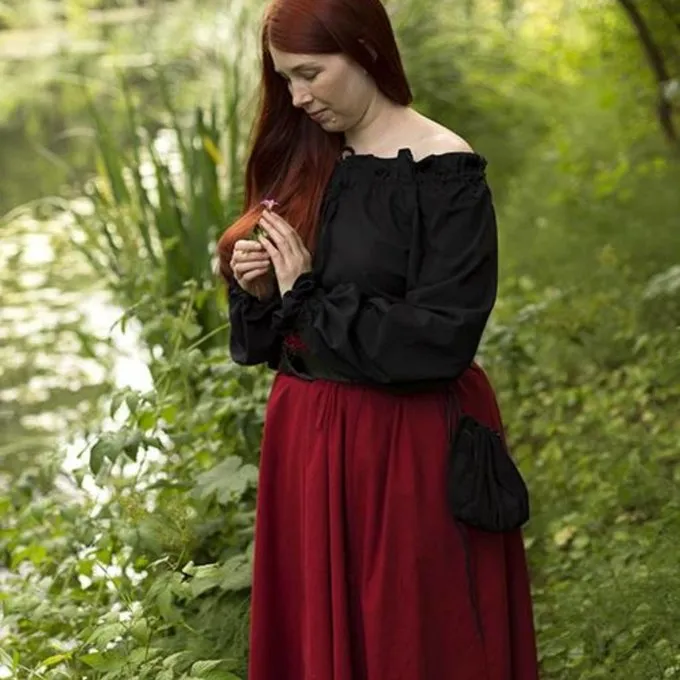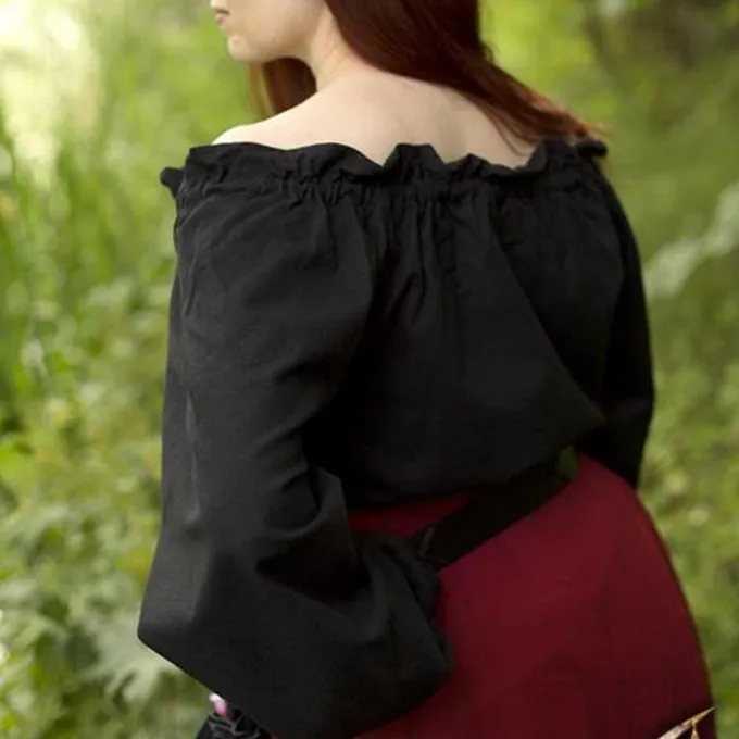 Dieser Pirat Bluse wird durch typische Spätrenaissance und Frühbarock Mode inspiriert. Die Bluse hat weite Ärmel, durch die Rüsche am Handgelenk betont, dass Sie so nah, dass die Hülsen nicht im Weg sind. Der obere Teil der Bluse einstellbar ist, kann es mit Schultern bedeckt mit offenen Schultern oder als normaler Bluse getragen werden.