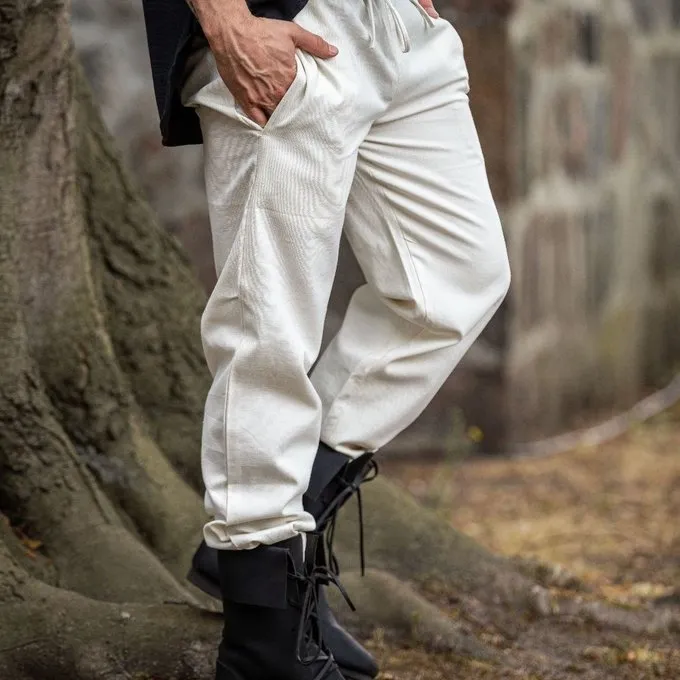 Diese Hose komplett aus Baumwolle gefertigt und hat ein elastisches Band an der Taille, wo sie mit einer Schnur befestigt werden. Dieses Kleidungsstück ist in den Farben schwarz, creme, hellbraun, dunkelbraun und blau in den Größen S bis XXXL.