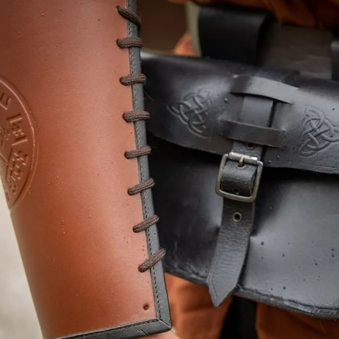 Diese Tasche ist elegant mit Keltischer Knotenmuster auf die Öffnung und die Schleifen eingerichtet. Es kann für die (frühen) Mittelalterliches Reenactment und LARP und es ist auch ideal für Feste genutzt werden. Mit den beiden Schleifen können Sie die Tasche am Gürtel hängen für Ihren Geldbeutel und andere persönliche Gegenstände keepsaving