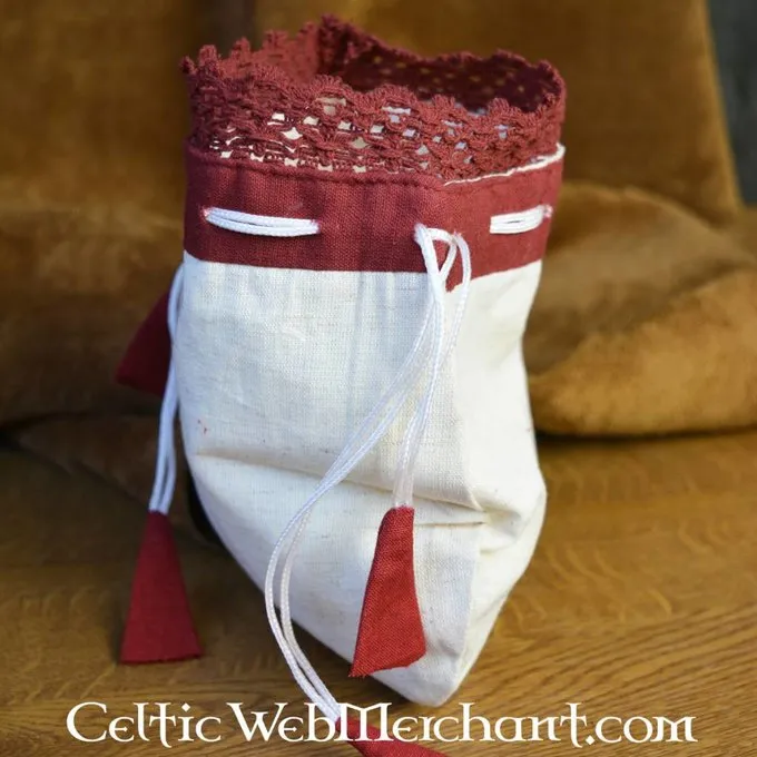 Dieser elegante Geldbeutel ergänzt das Outfit jeder Dame. Die Spitze ist zart mit einem Lochmuster und das Kabel abgeschlossen, der den Beutel hat spielerisch rote Details schließt. Das perfekte Accessoire für Damen nachspielen das Mittelalter oder Renaissance