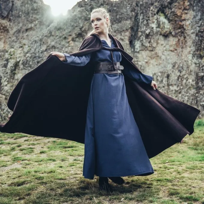Diese Wollmischung Mantel & nbsp; hat mit elegant gestickten Mustern SCHNEIDEN. Geeignet sowohl für Reenactment und LARP. Der Mantel hat Riemen an der Vorderseite für Befestigung