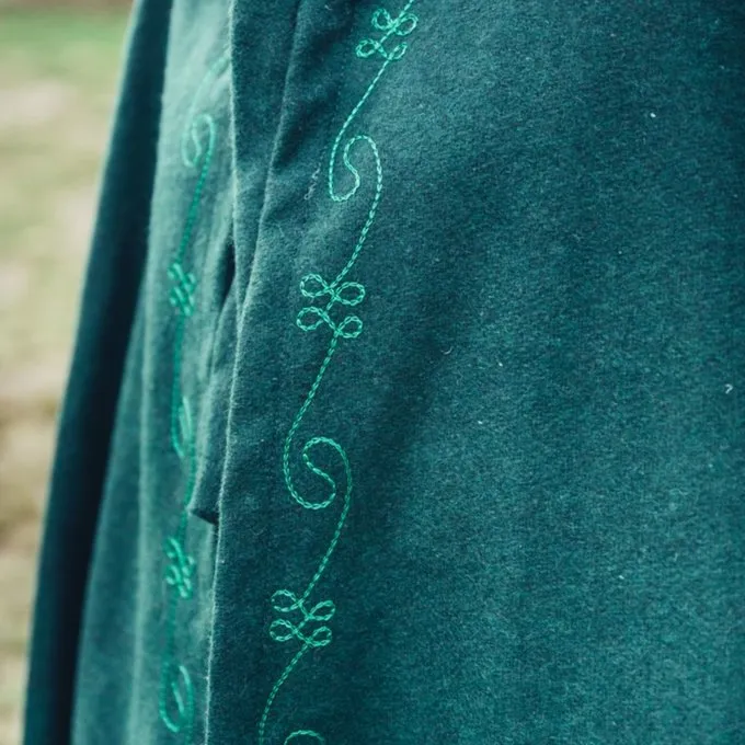 Diese Wollmischung Mantel & nbsp; hat mit elegant gestickten Mustern SCHNEIDEN. Geeignet sowohl für Reenactment und LARP. Der Mantel hat Riemen an der Vorderseite für Befestigung