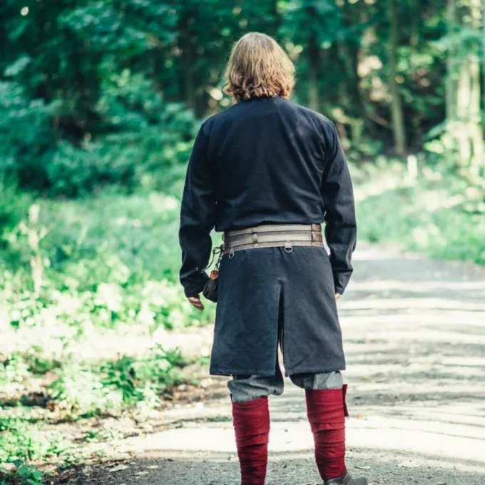 Diese Tunika basiert auf Kleidungsstücken, die im frühen Mittelalter von Wikingern und anderen Völkern in Nordwesteuropa getragen wurden. Aufgrund des universellen Designs eignet es sich auch für mittelalterliche Nachstellungen. Sie können die Tunika selbst tragen oder bei kälterem Wetter mit einer Unterwäsche kombinieren. Diese lange Wikinger Tunika reicht bis zu den Knien. Es hat einen V-Ausschnitt und einen Schlitz auf der Vorder- und Rückseite für ultimativen Tragekomfort bei Gefechten usw. Sie können die Tunika mit einem Gürtel kombinieren, um eine bessere Passform zu erzielen, oder Sie können die Tunika mit einem Gürtel kürzen, indem Sie einen Teil des Gürtels drapieren Stoff darüber. Während des frühen Mittelalters wurden alle Arten von Gegenständen am Gürtel getragen, wie Taschen, Messer, Äxte usw.