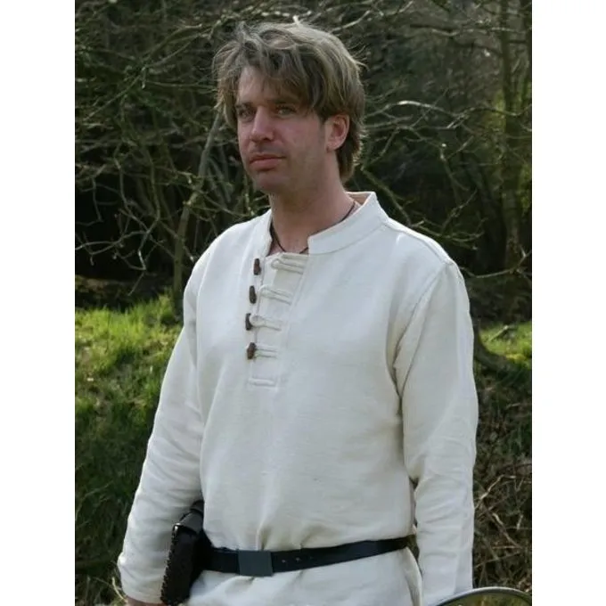 Dieses Shirt ist aus dicker handgewebter Baumwolle und am Halsausschnitt kann mit einfachen Knöpfen befestigt werden. Als Ergebnis war dies das perfekte Kleidungsstück für Soldaten. Es ist erhältlich in den Größen S bis XXL bis in den Farben schwarz und weiß.