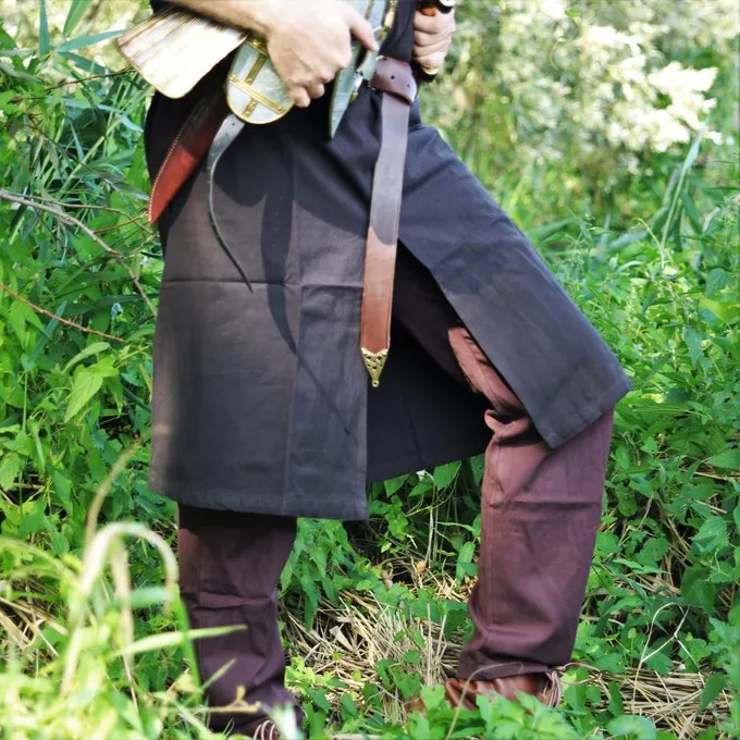 Diese Art der Tunika war ein einfaches Kleidungsstück getragen von Männern in ganz Europa während der frühen bis späten Mittelalter. Die Tunika können alleine getragen werden oder als Unter unter einer Tunika mit einer anderen Farbe. In kälteren Klimazonen, wurde es oft mit Hose und Beinwickel kombiniert.