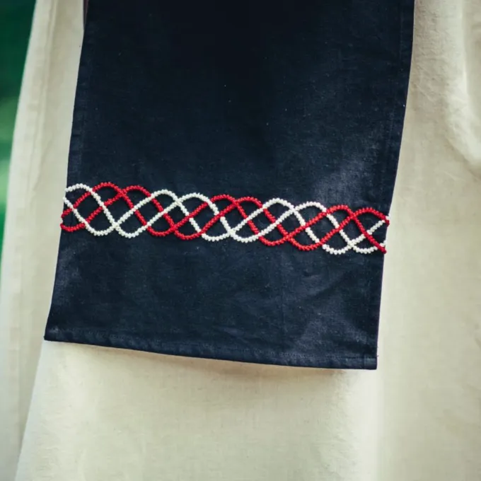 Material: 100% Baumwolle / / Farbe: schwarz (mit weißer und roter Stickerei) / / Broschen sind nicht enthalten / / Länge: ca. 91 cm / / Waschen Rezept: 30 Grad Wäsche / / Auf der Grundlage eines historischen Originals