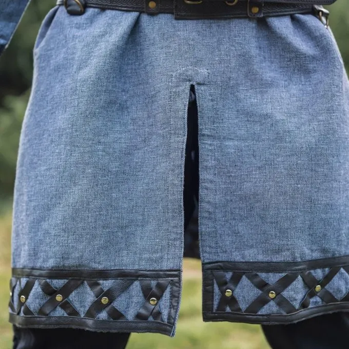 Diese Tunika ist perfekt für Wikinger-Larp- und Cosplay-Outfits. Die Tunika ist wunderschön mit Leder und Nieten verziert, außerdem ist sie bestickt. Es hat lange Ärmel, ist aus fester Baumwolle und reicht etwa bis zu den Knien. Dieses Design ist von den Rusvik-Wikingern inspiriert! Der Gürtel auf den Bildern wird separat verkauft.