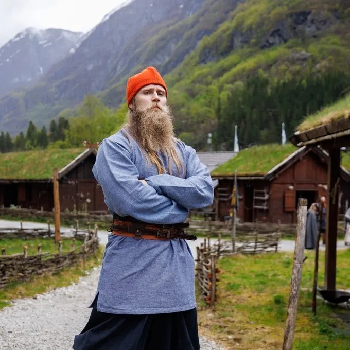 Diese Wikingerkappe basiert auf Fragmenten historischer Originale und Bilder aus der Wikingerzeit. Es besteht aus Wolle und hat handgenähte Details.