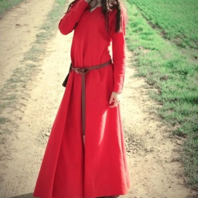 Das stilvolle Viking gekleidet basiert auf Kleidung in der Wikingerstadt Haihtabu gefunden Fragmente. Diese Art von Kleid wurde zwischen dem 7. und 14. Jahrhundert getragen. Das Kleid ist aus Baumwolle und erhältlich in verschiedenen Farben und Größen.