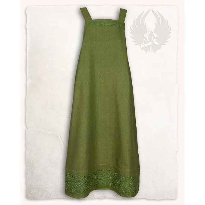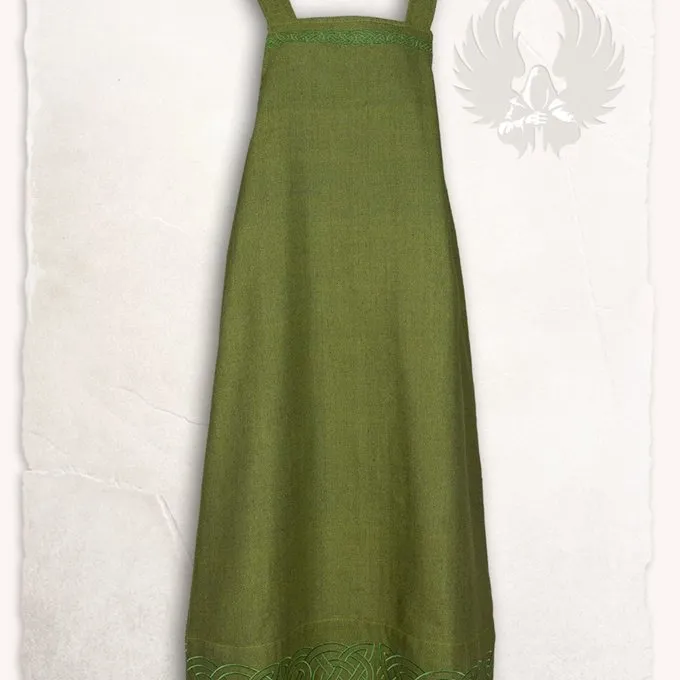 Diese hangeroc ist für Viking Nachstellung, LARP und Cosplay geeignet. Darüber hinaus hat diese hangeroc ein schönes Fischgrät-Motiv, das es sehr einzigartig macht. Das Kleid reicht bis zu den Waden und ist mit einem Knotenmotiv am unteren Rande verziert. Also das hangeroc ist das perfekte Accessoire für Viking Kostüme.