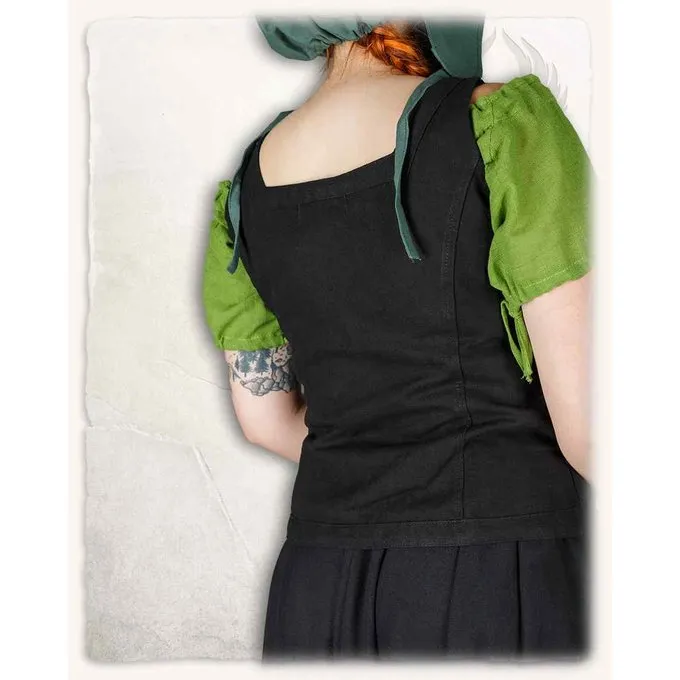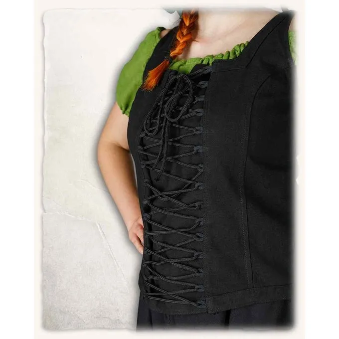 Das „Ursula“ -Beor ist an kühlen Tagen über eine Unterwäsche oder Kleidung getragen und schützt vor leichtem Regen. Das Mieder kann locker als Weste oder festgeschnürt und mit der Schnürung an der Vorderseite geschlossen und in die gewünschte Form gebracht werden.