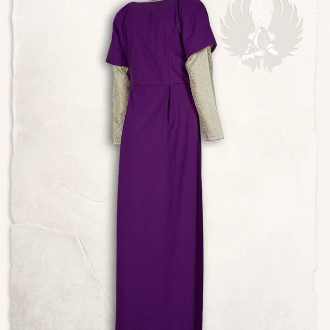 Dieses Kleid ist perfekt für Ihr mittelalterliches Kostüm einer edlen Dame. Das Kleid besteht aus Polyesterwolle, die Sie während der kalten Nächte und den verschiedenen Jahreszeiten warm hält. Das Kleid hat an der Vorderseite eine Schnürung, sodass das Kleid an die Anpassung seines Trägers anpassen kann. Der Flieder macht dieses Kleid besonders für den Adelieren des Adels. Das Kleid strahlt Eleganz aus und hat einen sehr weiblichen Charakter. Das einzigartige Damaststoff verleiht dem Kleid einen luxuriösen Look, der für eine Prinzessin geeignet ist.