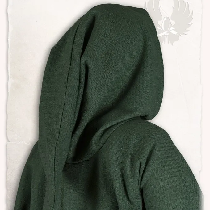 Dieses Kap eignet sich für Wiedereinführung, Cosplay und Larp. Das Kap besteht aus Leinwand. Dieses mittelgroße Kap ist perfekt für Schlachten und Erzeugung von Schichten in Ihrem Kostüm. Die Vorderseite des Kaps ist kürzer, dies verleiht dem Träger noch mehr Bewegungsfreiheit. Das Kap kann mit einem Knopf geschlossen werden.
