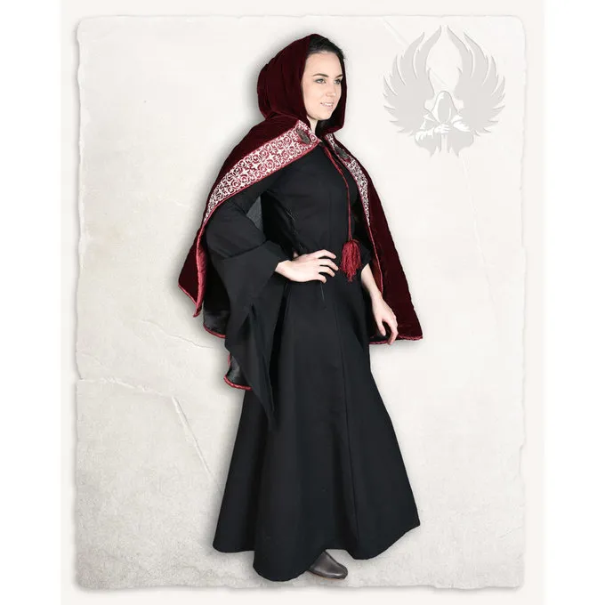 Dieses Kleid eignet sich für Reenactment, Cosplay und Larp. Das Kleid besteht aus Premium-Leinwand. Das Kleid hat elegante Kegelhülsen in einem hohen mittelalterlichen Stil und einem hohen Ausschnitt. Dies verleiht dem Kleid einen weiblichen und eleganten Blick. Das Kleid hat gewebte Zierleisten um den Halsausschnitt und den oberen Armen. Das Kleid hat eine Schnürung, sodass Sie es an Ihre eigene Figur einstellen können.