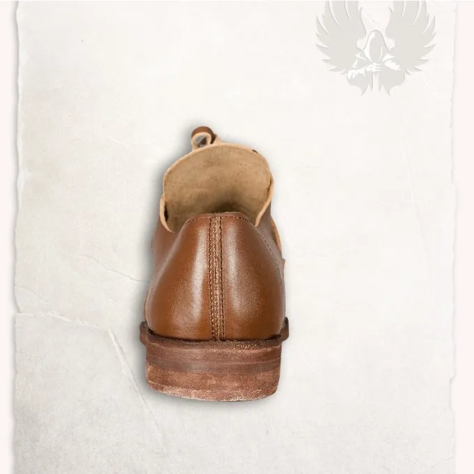 Material: Leder / Farbe braun / Größe: 40 bis 47 (Größen entsprechen den europäischen Schuhgrößen) / Lieferung: Paar / Auf einem historischen Original basiert