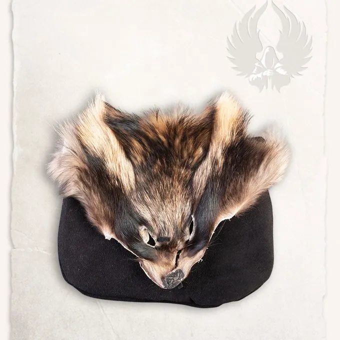 Material: Leder, Waschbärpelz / Farbe: Schwarz / Breite: 20 cm / Höhe: 16 cm / Mit Gürtelschlaufe / Auf einem historischen Original basiert