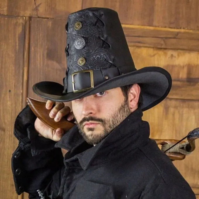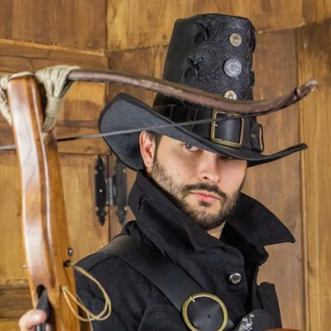 Die Hüte des spanischen Herstellers Rawblade bestehen aus hochwertigem Leder. Die traditionelle Handwerkskunst und die höchsten Qualitätsstandards garantieren eine lange Lebensdauer und dimensionale Stabilität. Ein Lederhut ist ein loyaler Begleiter bei schlechtem Wetter und ein wesentliches Accessoire für viele Kostüme. Dieser Hut ist perfekt für Hexenjäger und Kostüme des 18. bis 19. Jahrhunderts sowie für alle Arten von Cosplays und Larps. Dies ist die Deluxe-Version mit schönen Lederdekorationen und einem handgenähten Finish.