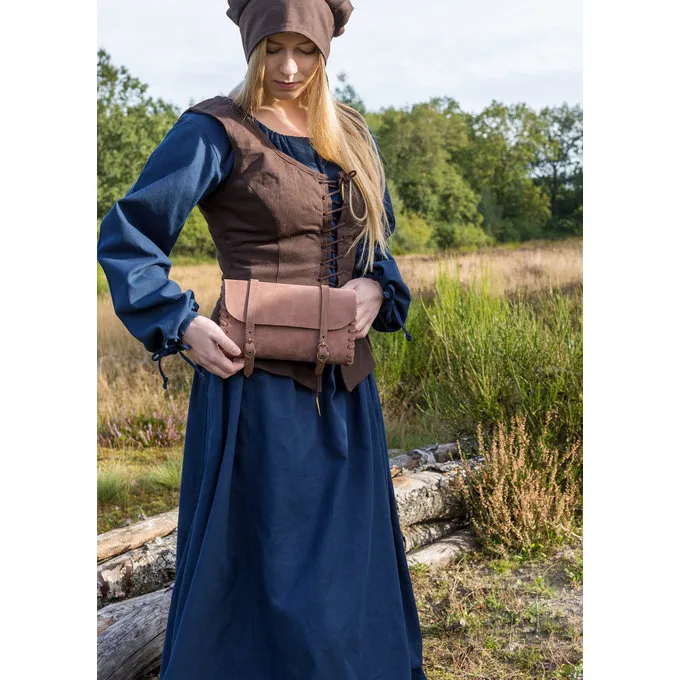 Diese Gürteltasche ist aus hellbraunem Leder. Die Oberfläche des Leders wird auf subtile Weise aufgeraut, es ein leichtes Wildleder Optik. Zwei Gürtelschlaufen sind auf der Rückseite genäht, so dass Sie es auf Ihrem Gürtel hängen, sehr praktisch für mittelalterliche Veranstaltungen und Festivals. Die Tasche hat zwei authentische spätmittelalterlichen Messingschnallen. Die Tasche hat eine authentische handgenähten Oberfläche. Ein perfektes Accessoire für mittelalterliche LARP und Reenactment Kostüme.