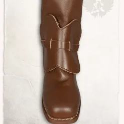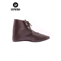 Diese Wikingerschuhe basieren auf Vorlagen und Fragmente von Originalen in Haithabu ausgegraben. Schuhe wie diese wurden in ganz Europa zwischen dem 7. und 12. Jahrhundert getragen. Diese Art von Schuh war relativ einfach repariert und eingestellt werden, so dass sie für eine lange Zeit populär waren. Diese Viking Schuhe haben eine 6 mm dicke Ledersohle und es kann mit Leder Schnürbänder befestigt werden. Diese Schuhe sind in den Größen 37 bis 47.